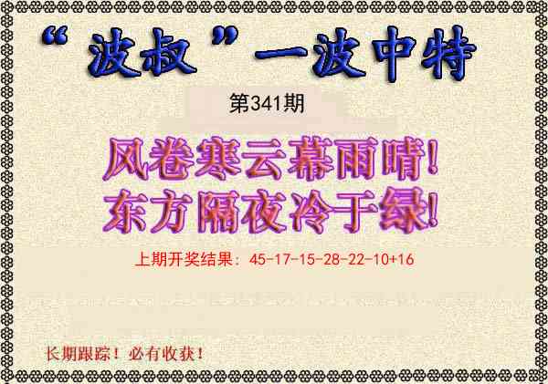 | 341期:绝杀③肖→ 【马羊鸡】开:?00准 |
